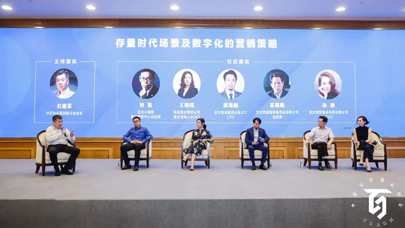 中百協(xié)場景創(chuàng)新分會會長紅建軍主持對話,對話題目為“存量時代場景及數(shù)字化的營銷策略”,藍(lán)光文商旅策劃管理中心總經(jīng)理劉凱 、華泓商業(yè)管理公司聯(lián)合創(chuàng)始人&CEO王曉暄、合生商業(yè)集團(tuán)合商云匯CTO龔海鵬、北京思康瑞體育用品有限公司總經(jīng)理高福順、北京楚梵基業(yè)科技有限公司CEO孫靜作為嘉賓參加分享。