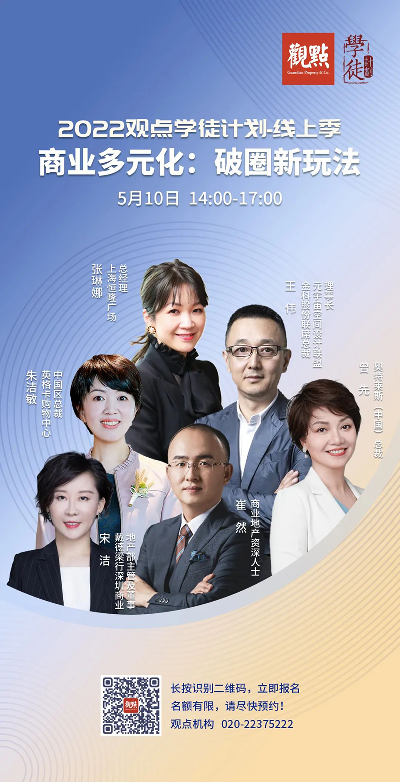 5月10日,由觀點(diǎn)機(jī)構(gòu)主辦的“2022觀點(diǎn)學(xué)徒計(jì)劃-線上季”線上專題討論會(huì)成功舉辦,本期討論主題為“商業(yè)多元化:破圈新玩法”。奧特萊斯(中國(guó))總裁受邀參加本次專題討論會(huì),并作了以“一站式生活目的地——奧特萊斯思考及實(shí)踐”為主題的分享。