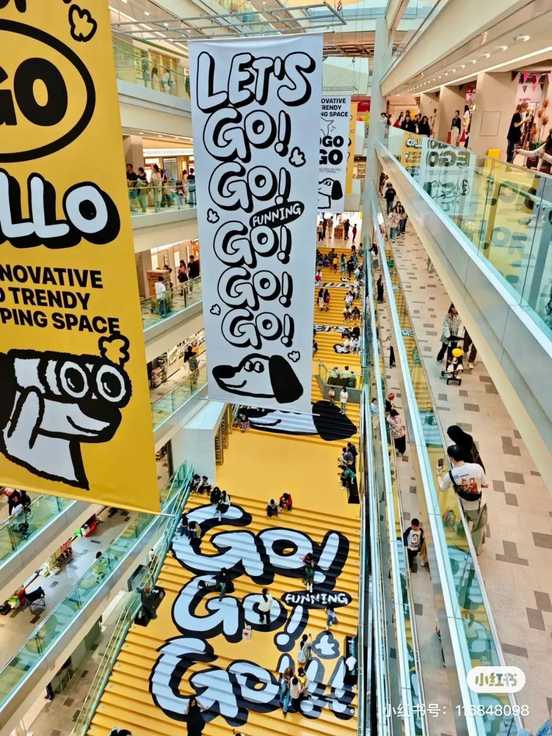 抵達(dá)商場入口,一抹鮮亮黃彩瞬間吸引目光;步入大堂,簡潔廣告語映入眼簾,色調(diào)與設(shè)計渾然統(tǒng)一,主通道沐浴在明媚黃光中,配以吉祥物GoGo萌態(tài)畫像,攝影佳作信手拈來,隨手一拍皆是風(fēng)景畫。