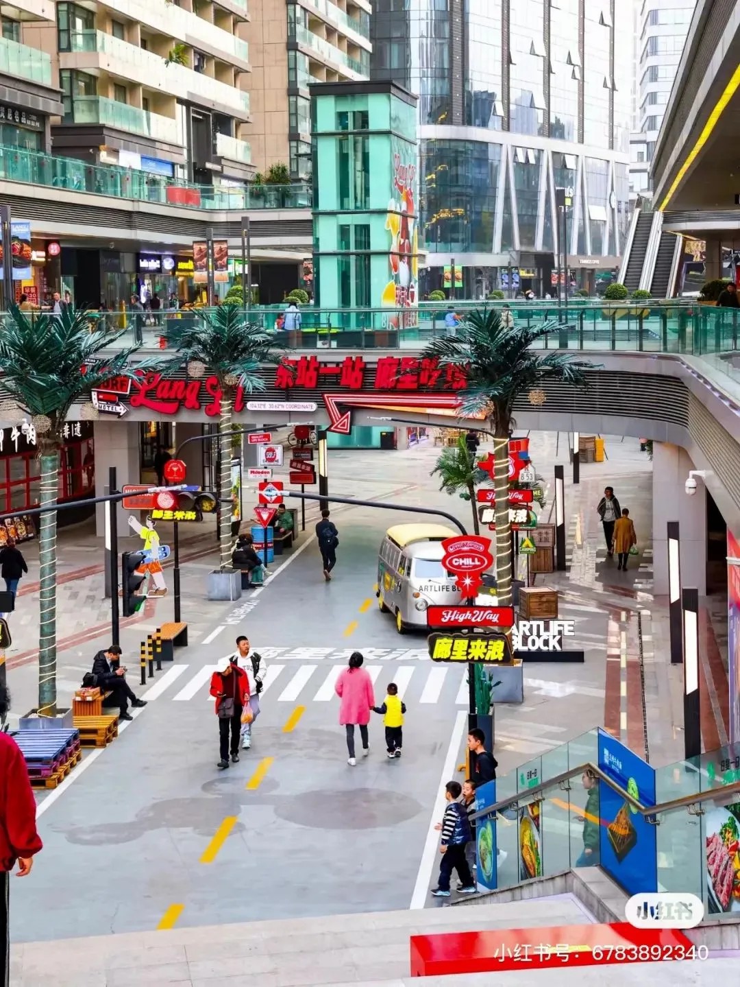 街區(qū)核心的下沉式廣場,匠心獨(dú)運(yùn),以美式公路風(fēng)情為藍(lán)本,巧妙融合異域風(fēng)韻與休閑度假氣息,不僅設(shè)計獨(dú)樹一幟,更成攝影打卡新寵,讓人仿佛穿越時空,瞬間切換場景,領(lǐng)略多元文化的魅力。此舉不僅巧妙解決了傳統(tǒng)商業(yè)下沉空間引流之困,更為其注入了勃勃生機(jī)與無限可能。