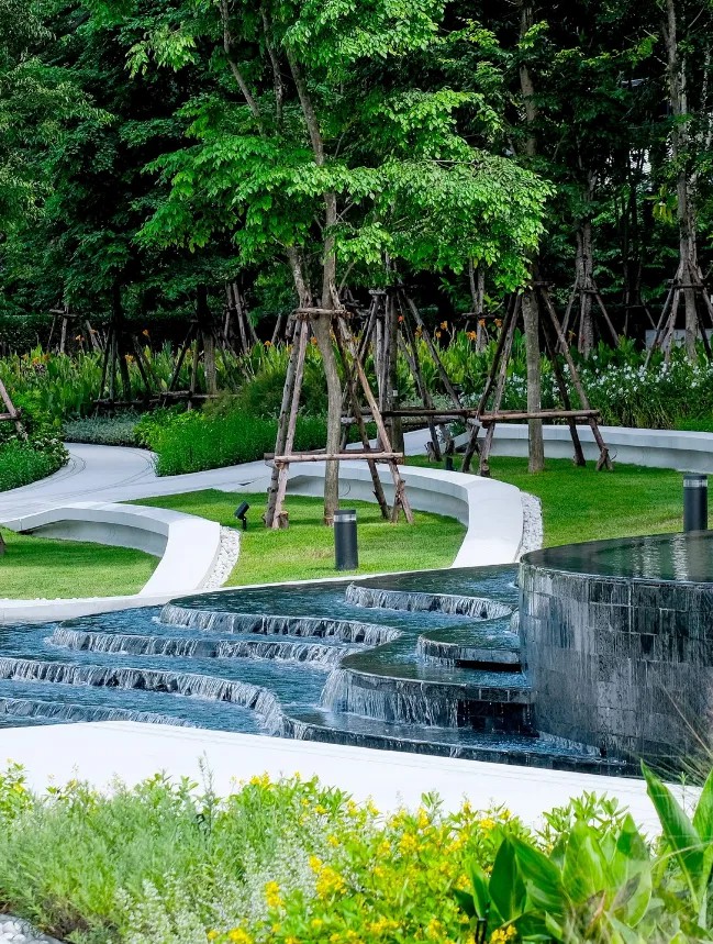 毫無(wú)疑問(wèn),可持續(xù)和綠色生活是當(dāng)下城市居民最為渴求的一種生活狀態(tài)。依托來(lái)自于區(qū)位的先天優(yōu)勢(shì),項(xiàng)目東西兩側(cè)毗鄰LUMPHINI公園和Benjakitti公園,加之自身打造了超過(guò)50萊的綠色開(kāi)放空間(泰國(guó)常用面積測(cè)度單位,合計(jì)約8萬(wàn)平方米),全部綠地連接起來(lái)形成一個(gè)占地超過(guò)700萊(合計(jì)超過(guò)百萬(wàn)平方米)的巨大“綠洲”。One Bangkok所在區(qū)域可以說(shuō)是曼谷重要的“綠肺”。