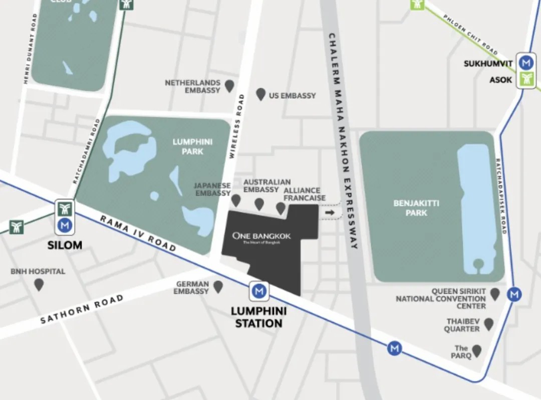 Wireless Road 和 Rama IV 路的拐角處,是曼谷市中心熱點(diǎn)區(qū)域的最后一塊土地,將Sathorn、Silom 和 Samyan等主要商圈連通起來(lái),緊靠地鐵LUMPHINI站與輕軌 Ploenchit 站(在該站設(shè)有免費(fèi)穿梭巴士),可完美融入周邊相對(duì)成熟的公共交通系統(tǒng)中。