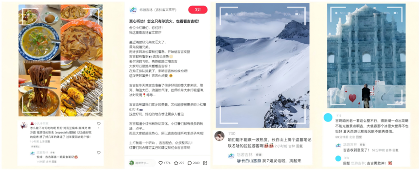 前有吉林文旅在小紅書官方賬號發(fā)布“聽勸求助”筆記,全網(wǎng)征集“吉吉該怎么整活兒”,單條筆記收獲2000+條評論,評論數(shù)量高出其他內(nèi)容筆記10倍之多。