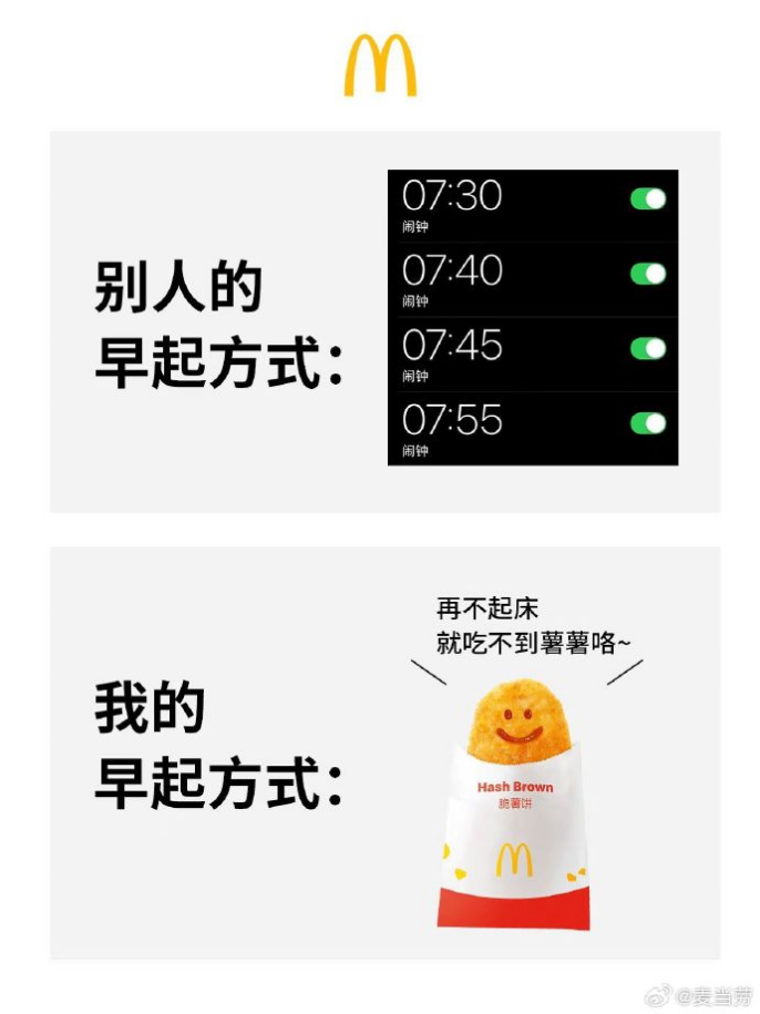 對(duì)于此,麥當(dāng)勞也抓住了自帶共鳴的打工人群體,畢竟各大寫字樓附近,總會(huì)有麥麥的身影,在北京更是被戲稱為“老北京的傳統(tǒng)美食”。