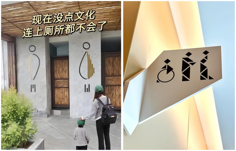 大家都可以玩兒抽象,但也不能太抽象。比如長(zhǎng)期被大家吐槽的“上廁所之前要做個(gè)閱讀理解”的男女衛(wèi)生間抽象標(biāo)識(shí),難免讓消費(fèi)者感覺(jué)設(shè)計(jì)師有些“自嗨”,而并未滿足洗手間應(yīng)便于尋找的基礎(chǔ)功能需求。