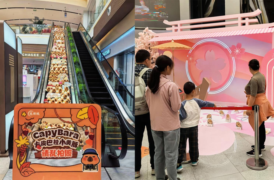 龍玥城自開業(yè)以來根植“悅己主義”持續(xù)打造有趣的沉浸式互動(dòng)體驗(yàn)活動(dòng),今年五一期間更開啟了一場玩趣生活嘉年華,從潮流IP打卡到科普研學(xué),從傳統(tǒng)游戲到驚險(xiǎn)表演,精準(zhǔn)覆蓋消費(fèi)者多元化需求??ㄆぐ屠↑S豚電梯瀑布快閃活動(dòng)設(shè)置了一整個(gè)電梯的潮流IP卡皮巴拉小黃豚,結(jié)合皮巴拉主題的立牌套圈游戲,吸引眾多消費(fèi)者前來打卡。
